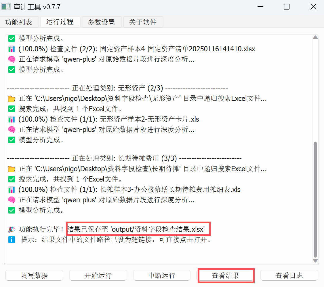 运行完毕后,点击“查看结果”,打开生成的 Excel 文件: