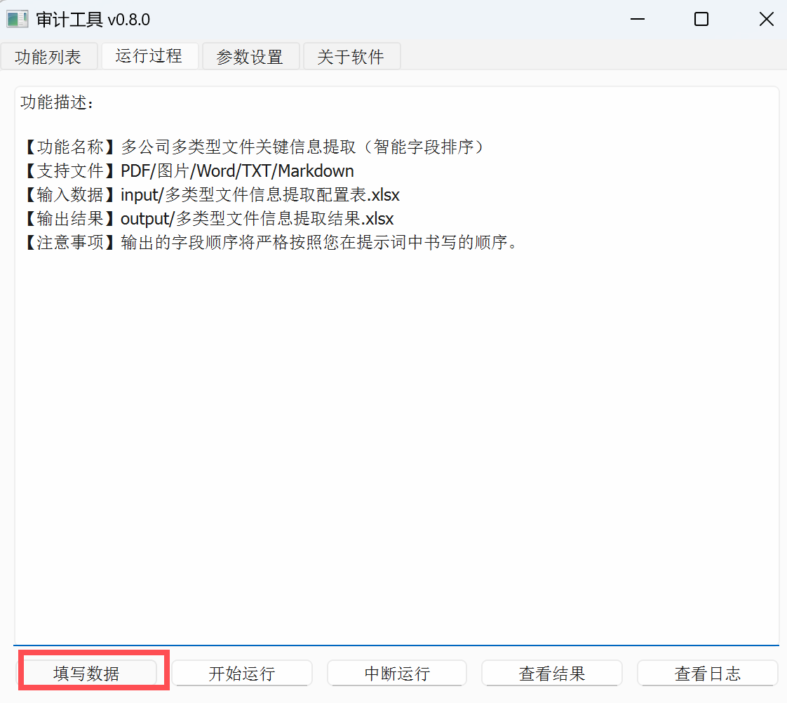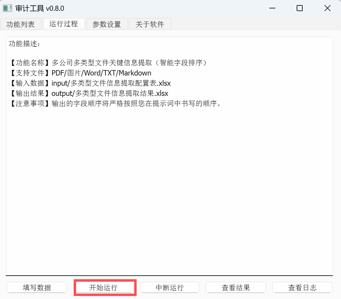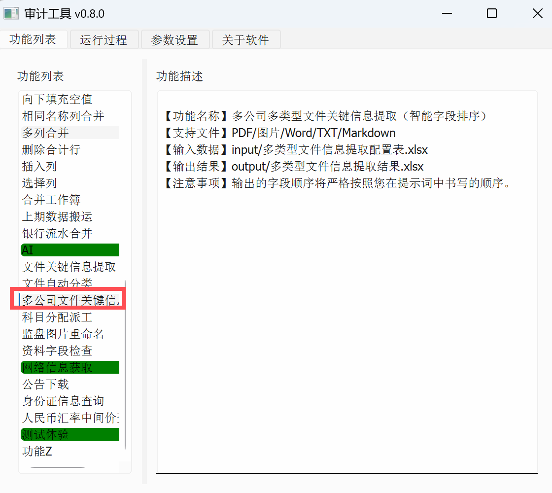 双击“多公司文件关键信息提取”,进入该功能: