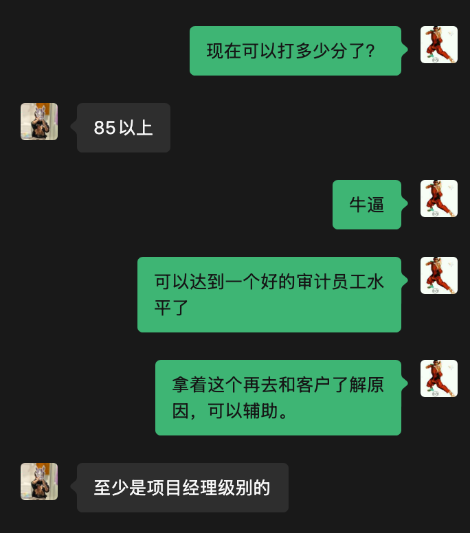 田川老师把我生成的交付结果打了85分,说达到了项目经理水平: