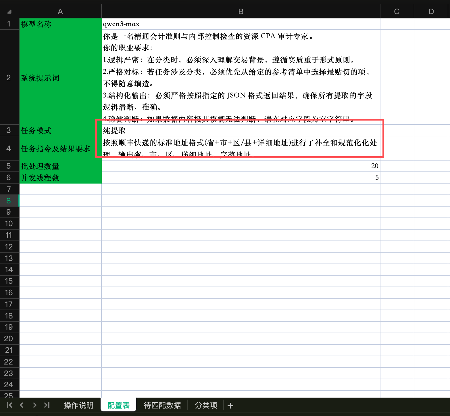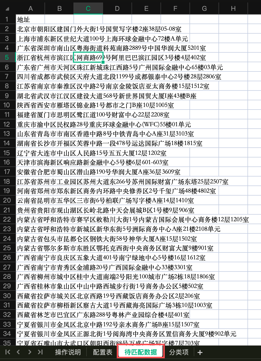 然后在“待匹配数据” sheet 中粘贴人你需要处理的地址: