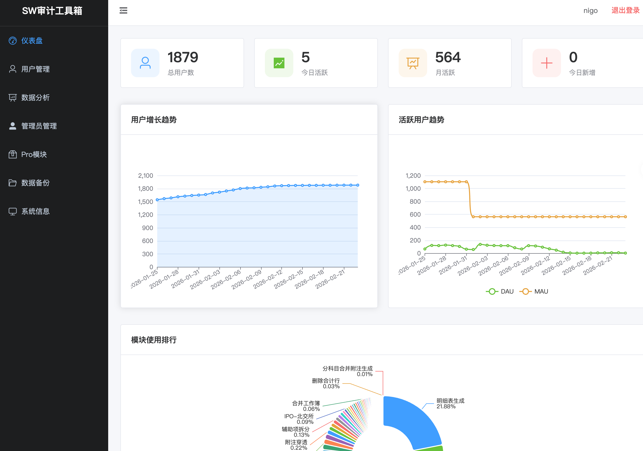 初四的时候,花费了 4 小时 14 分钟,对SW审计工具箱后台进行了升级: