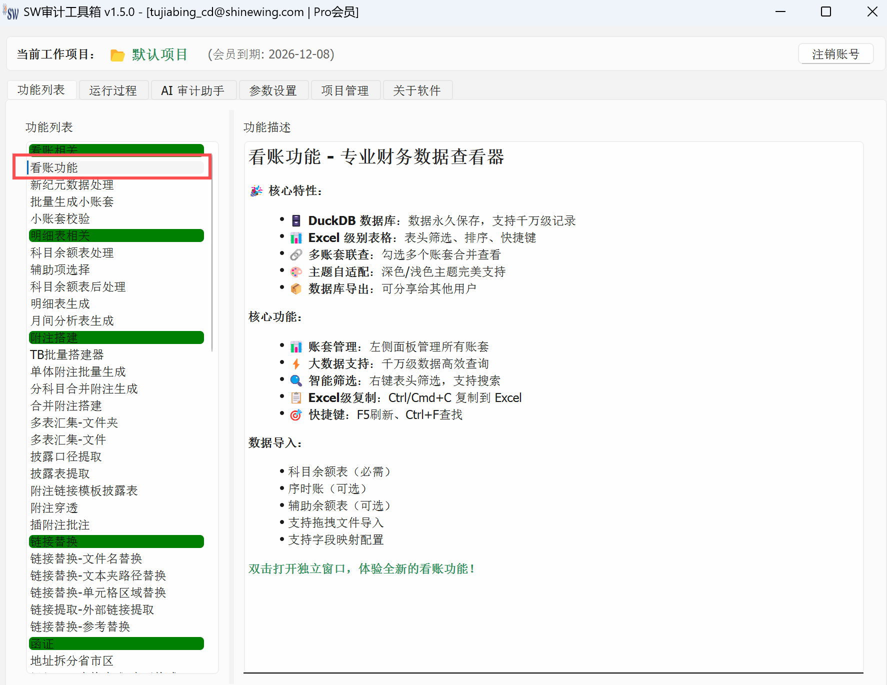 为了解决这些问题,我在 SW 审计工具箱中添加了一个“看账功能”,
