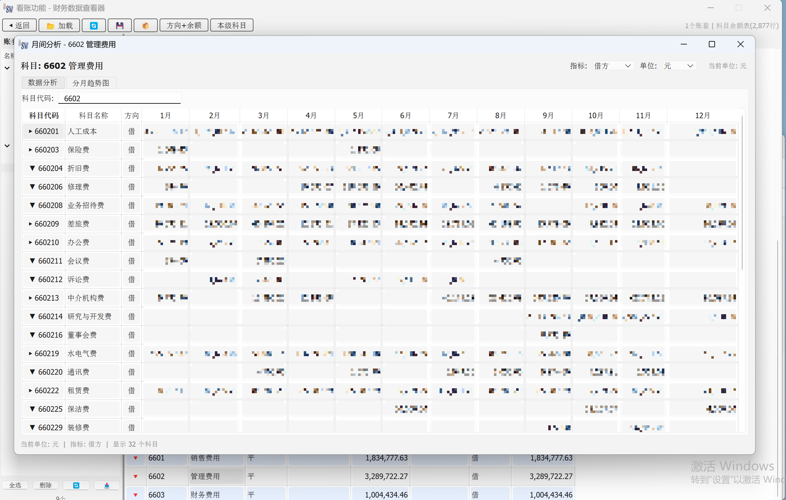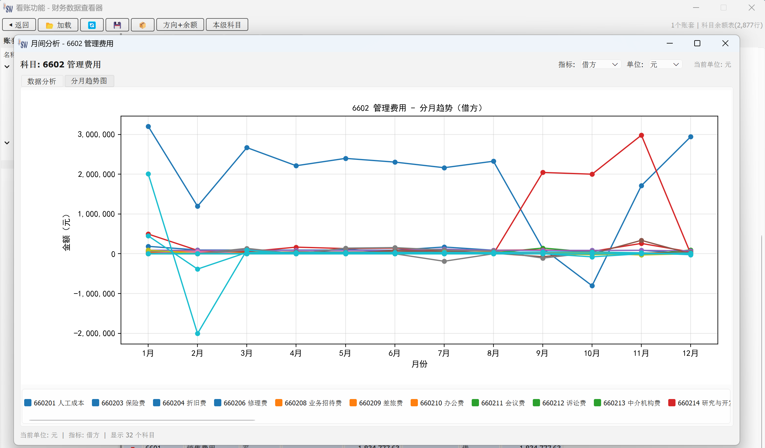 相比小账套的月间分析只能显示某一个科目的子级科目的局限外,
