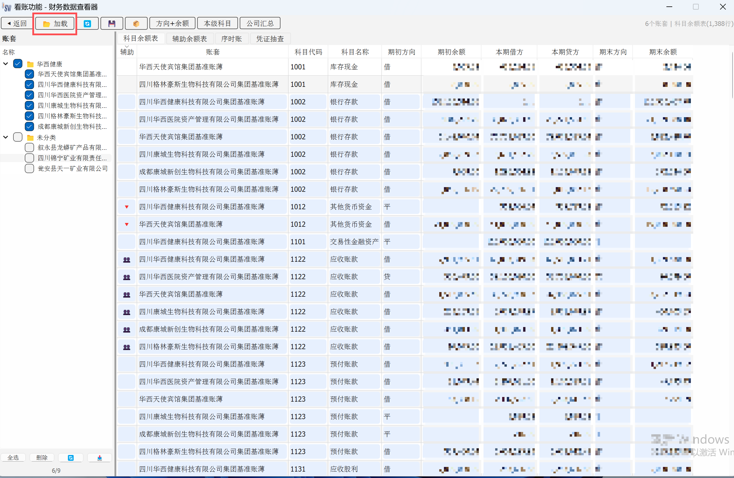 另外,你勾选多个账套,点击“加载”也可以直接汇总查看: