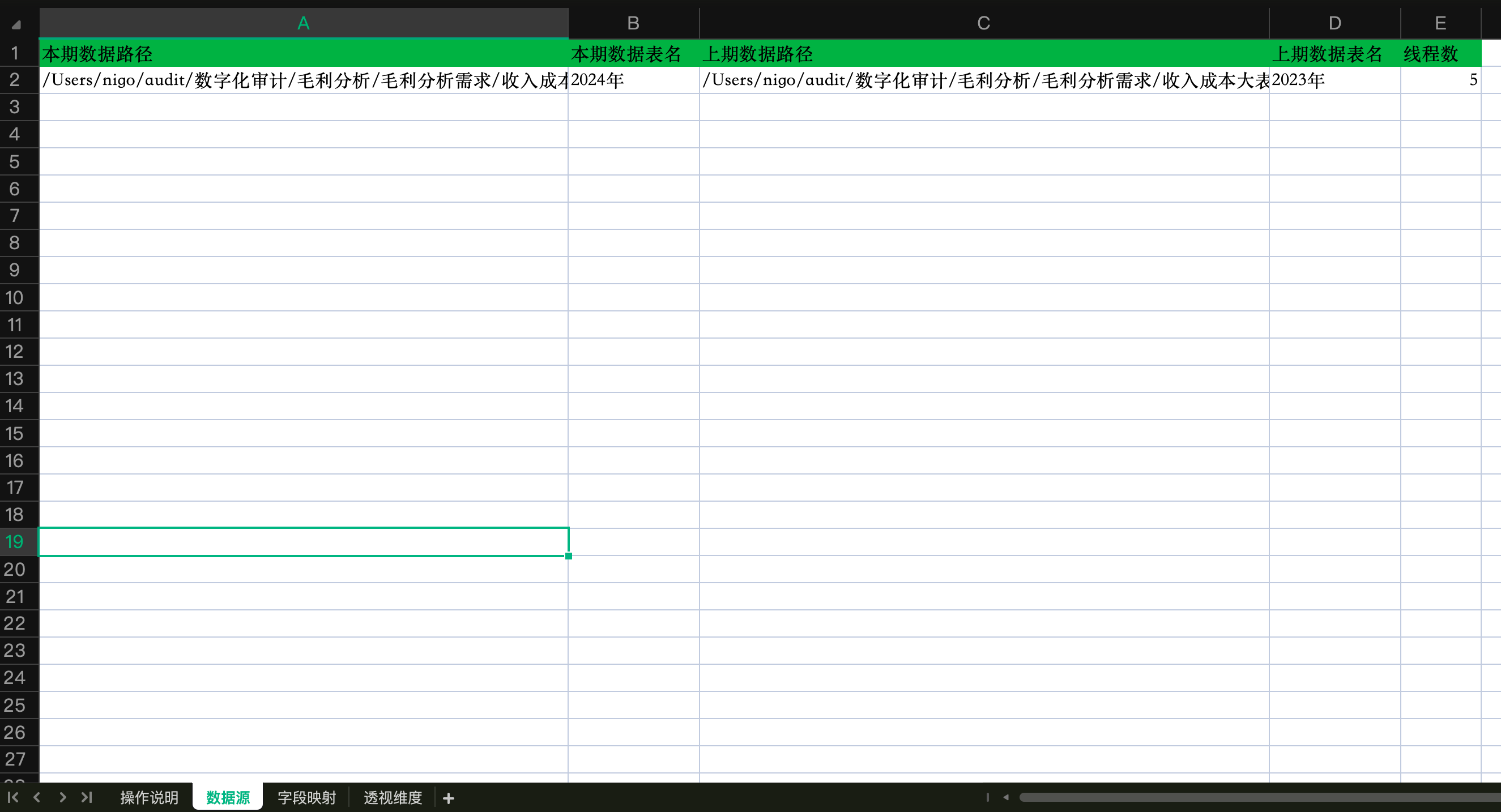 填写上两期的收入成本大表的文件路径和表名。