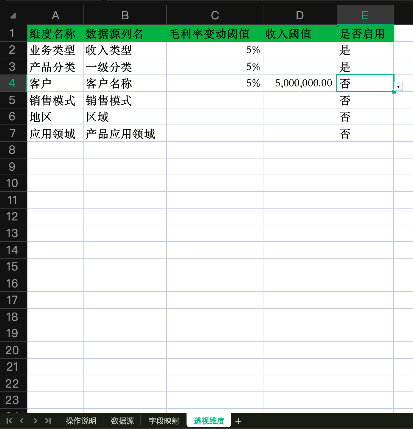 双击“毛利分析”,点击“填写数据”,打开配置表: