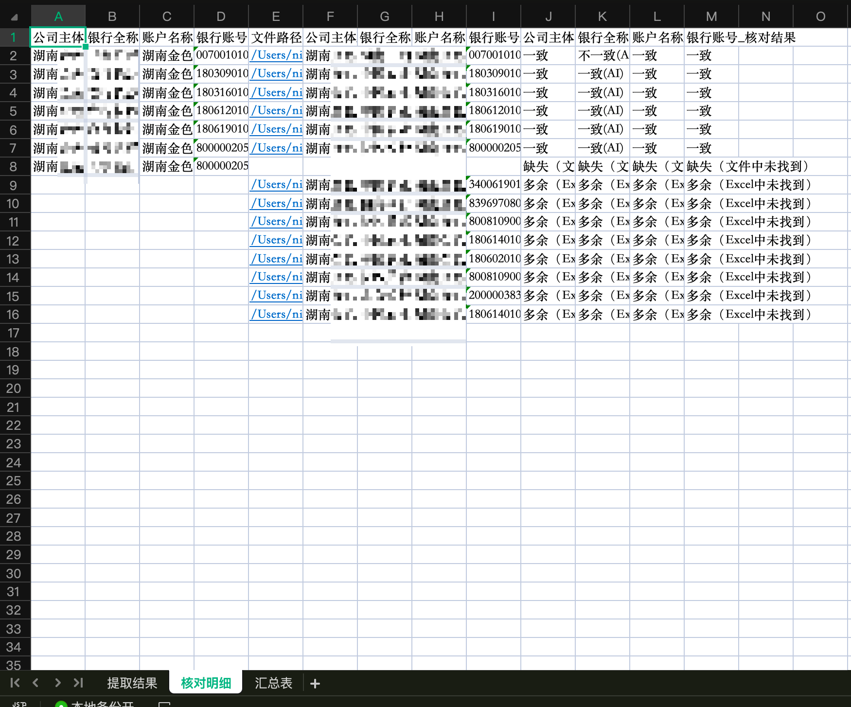 Excel 信息中有的,文件中提取出没有的会显示,
